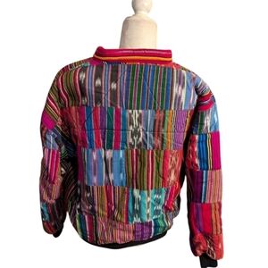 Vtg 80s 90s Serape Unique Patchwork Bomber Jacket Ethnic Art Grunge Aztec sz L