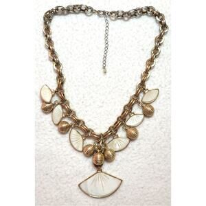 Vtg 80s 90s Signed NRQ Avon Shell Gold Tone 22 In Fan Dangles Charm Necklace