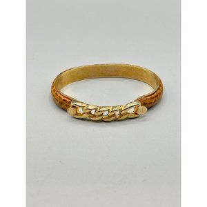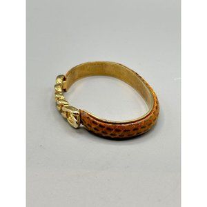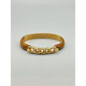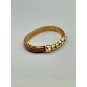 Vtg 80s 90s Snakeskin Bracelet Hinged Bangle Light Brown with Gold Plated Chain
