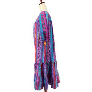 Vtg 80s 90s Two Potato Laguna Beach Artsy Midi Tiered Muumuu Dress XS Cotton NOS