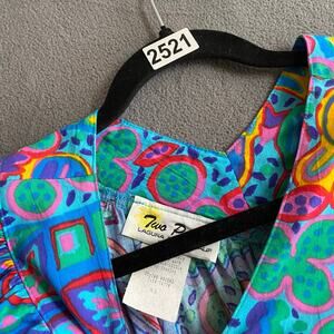 Vtg 80s 90s Two Potato Laguna Beach Artsy Midi Tiered Muumuu Dress XS Cotton NOS