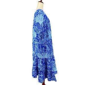 Vtg 80s 90s Two Potato Laguna Beach Midi Tiered Muumuu Dress M Cotton Blue NOS