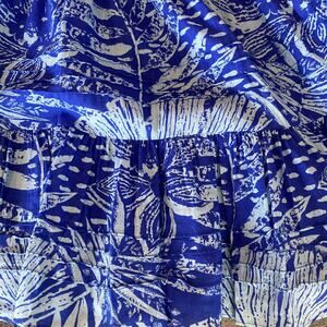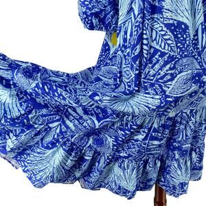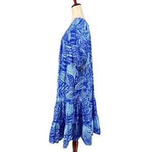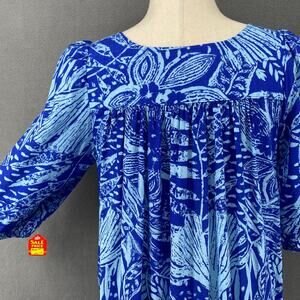 Vtg 80s 90s Two Potato Laguna Beach Midi Tiered Muumuu Dress XS Cotton Blue NOS