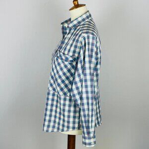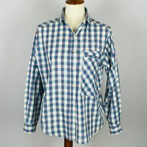 Vintage 1980's/1990s's Wrangler Cityscapes top in size medium. Made in the USA of 60% cotton 40% polyester in washed red, white, and blue plaid. Measures 21" armpit to armpit, 25.25" neck to tail, 22" sleeve. Excellent condition with no holes, tears, stains, or ripped seams. Smoke free, pet friendly home.