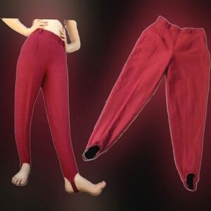 Vtg 80s AJ red sexy pleated side zip high waist leggings stirrup pants 4-6 NWOT