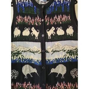 Vtg 80s Alpine Themed PURE WOOL Knit Ski Vest Sweater Made In New Zealand XL