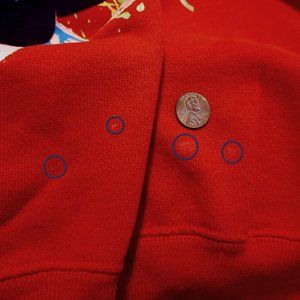 CONDITION: In good condition with minor fading. There are four small lighter dots below the transfer to the right as pictured in last photo. The sweatshirt is a true red.