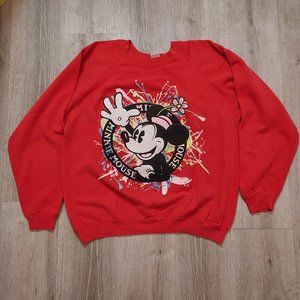 Vtg 80s American Marketing Works Minnie Mouse Sweatshirt, Neon Splashes, Size XL