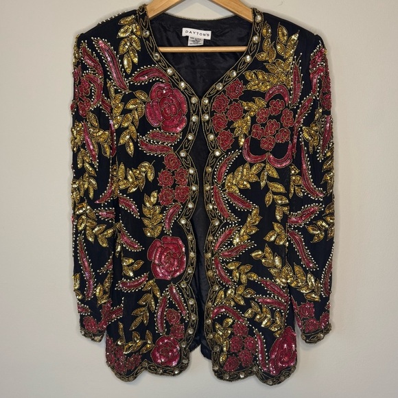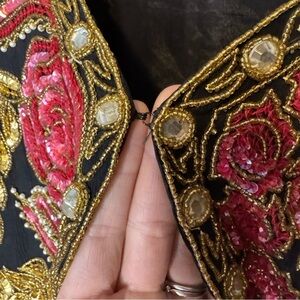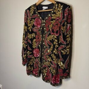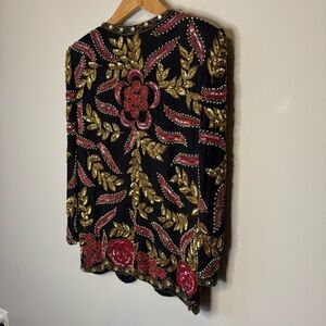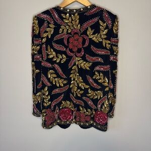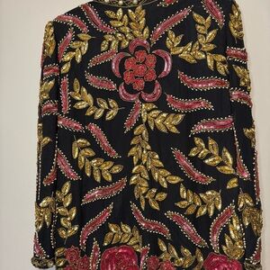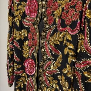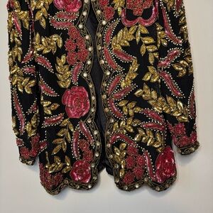 Vtg 80s Beaded Silk Evening Jacket Size Medium Floral