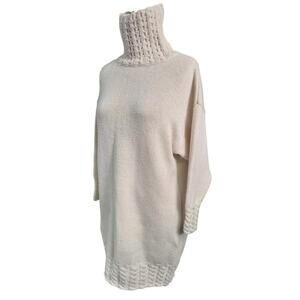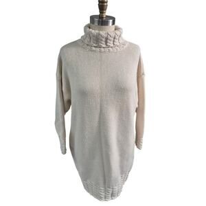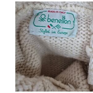 Vtg 80s Benetton Italian long Wool Blend Knit Tunic Turtle Neck 48 L Made in Italy- cool chunky cable knit in the neck. In excellent dry-cleaned condition.