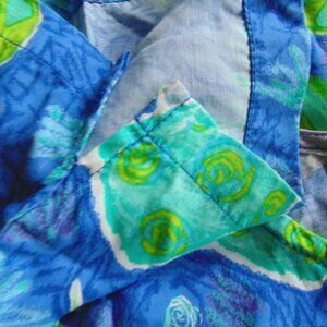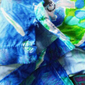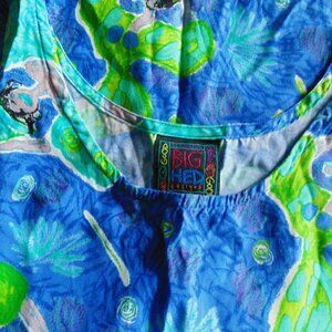 Vtg 80s Big Hed Designs Rayon Blue Green Hawaiian Floaty Tank Fashion Goddess