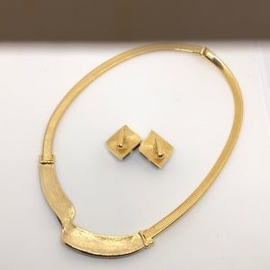 Vtg 80’s Black Enamel Gold Omega Choker Earrings