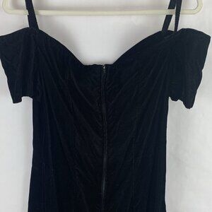 Vtg 80s Black Velvet Mini Dress Whimsigoth Sweetheart Neck Off The Shoulder