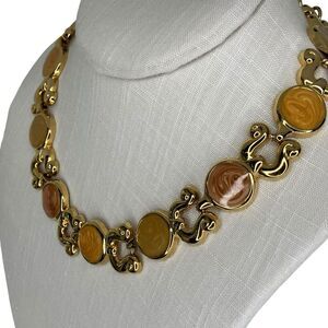 Vtg 80's Bold Gold Tone Collar Necklace Enamel Swirl Power Dressing Luxury