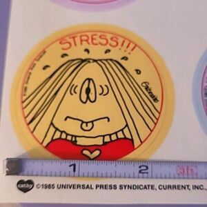 1985 Cathy Vtg 80s CAthy Cathy Guisewite stickers on sheet page quantity 6 round Retro Y2k