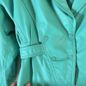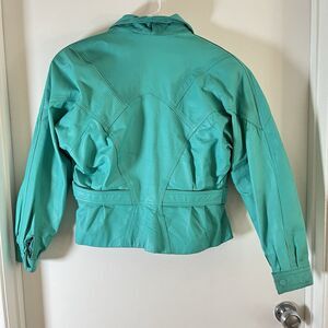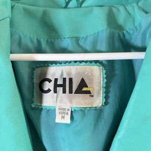 Vtg 80s CHIA Teal Leather Jacket Women Sz Medium 8 Glamour Chic Grunge Gyaru