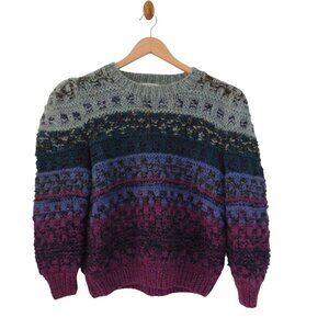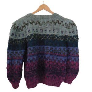 Vtg 80’s CHRISTINE Wool Blend Sweater Chunky Knit Cropped Hand Knit Sz Large