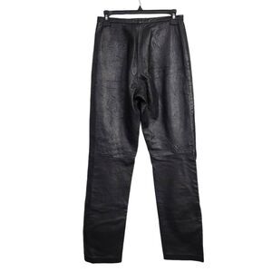 Vintage 80s 90s Cache Black Lamb Leather Straight/Slim Pants, front zip button closure, super Buttery Soft leather, high-mid rise, front slip pockets, Bareback, fully lined, 31"inseam, made in USA.