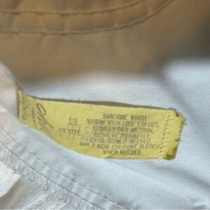 Very good vintage condition. No flaws. Some light was wear. No major staining, however there is a bluish spot on the inside of the leg that can most likely be bleached out. Button fly. Button detail on the tapered leg. These are marked a size 13 petite. Would make a great ankle length jean. USA made. Logo buttons and embroidered logo on back pocket. Please see photos for details and measurements as vintage sizing differs.