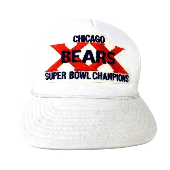 Vtg 80s Chicago Bears White Mesh Super Bowl XX Champions Hat Trucker Patch Cap