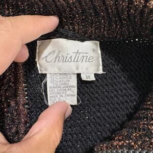 Vtg 80s Christine Knit Jacket Zip Sweater Embellished Beaded Suede Wool Tassels