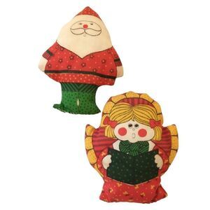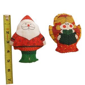 Vtg 80s Christmas Stuffed Ornament Lot of 2 Fabric Handmade Angel Santa Claus. Condition is pre-owned and vintage. No rips, or tears. Fabric not crisp and new. Handsewn on preprinted fabric. Super cute and totally retro. Please see photos for detailed condition.
