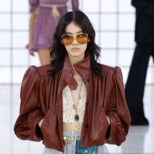 Vtg 80s Cropped Brown Boho Chic Freedom Parisian Military Jacket