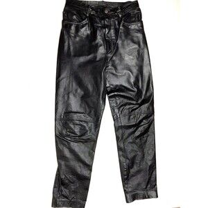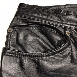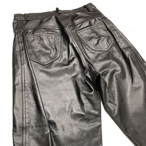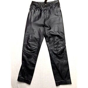 Vtg 80s DEERSKIN Trading Black Leather Jean Pants Men 28X30 Lined Rock Star