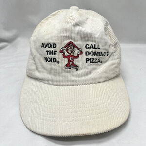 Vtg 80s Dominos Pizza Avoid The Noid Corduroy Trucker Snapback Hat Embroidered