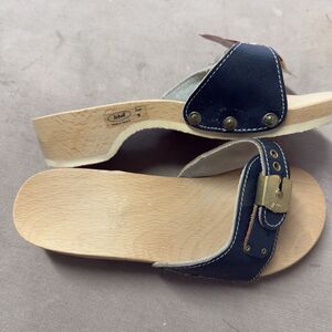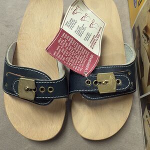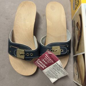 Vtg 80s Dr Scholl Wooden Exercise Sandal Clog Made in Austria Blue Women's 5 NWB
