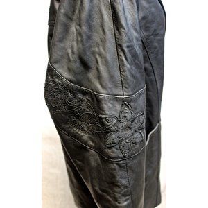 Vtg 80s ECHTES Leder Women's Leather Trench Coat Jacket Embroidered Detail Sz S