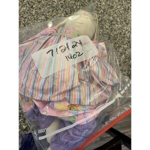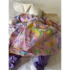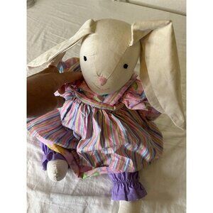 This one-of-a-kind vintage plush doll is sure to bring a smile to your face. Handmade in the United States in the 1980s, this (rabbit plush doll is a true folk art masterpiece. With its whimsical dress and apron, it exudes charm and nostalgia. The doll is perfect for collectors of vintage stuffed animals or as a unique gift for someone special. Don't miss out on the opportunity to own this timeless piece of handcrafted art. Great home decor . Please view all photos as they are part of description including measurements and condition. This comes from a smoke free home and has been sanitized. There is a tiny stain on the pants. 724241