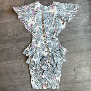 Vtg 80s Frederick's of Hollywood Floral Ruffle Cotton Dress Knee Length Size XS