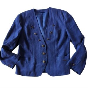 Vtg. 80s Geiger chic blue linen blazer jacket classic Tyrolean style blazer sz S