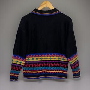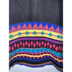 Vtg 80s Geometric Sweater Rafaella Knit Aztec Collar Bold Color Black Sz M