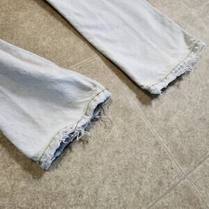 Condition: These jeans are beautifully worn in and distressed. With that said, there is a hole along the backside(as show in photos). These could be patched up, cut into shorts, or worn as is if you don't mind showing a little cheek. There is also one small faint spot(also shown in photos). Other than this, these jeans are in good pre-loved vintage condition