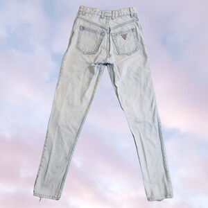 Vtg 80s Guess USA Acid Wash Light Denim Distressed Boot Cut Retro Mom Jean Sz 28