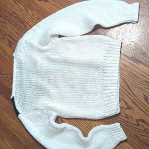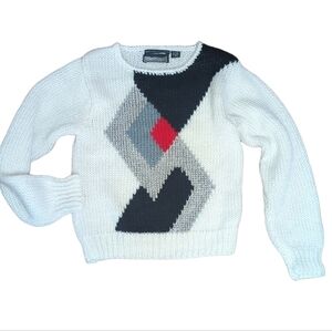 Vtg 80s Hand knit Bramble Lane geometric Chunky pattern white/black sweater Sz S