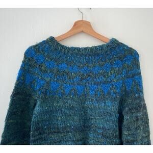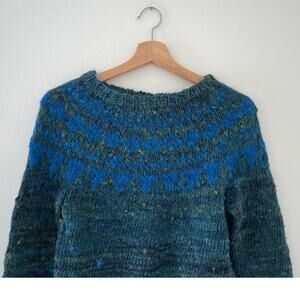 Vtg 80's Handknit Aquamarine Spaceknit Chunky Pullover Sweater Cozy Grunge