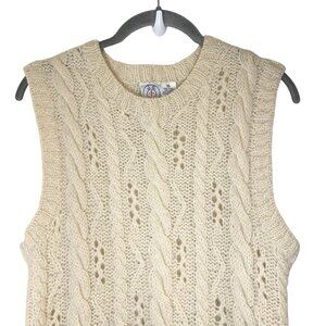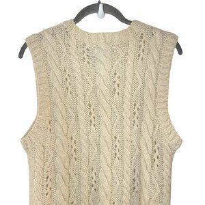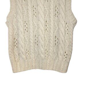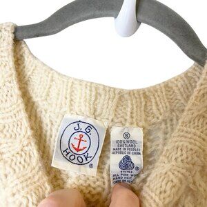 Vtg 80s JG Hook Sweater Vest Cable Knit Cream Wool Sleeveless Shetland Fisherman