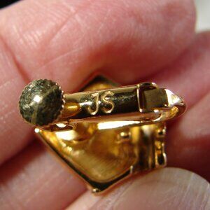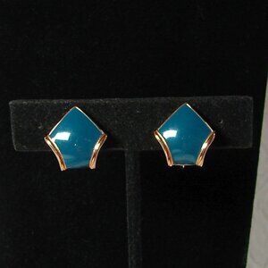 Vtg 80's JS Clip-On EARRINGS, Gold Tone w/Dark Teal Enamel F77