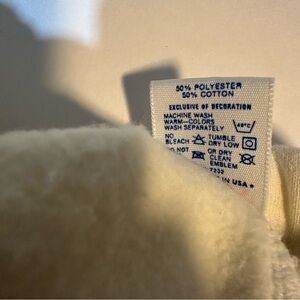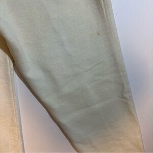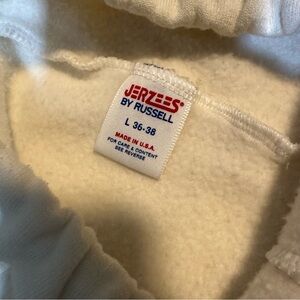 Good vintage condition. No flaws. Some color bleed on the side leg and some yellow spots/stains on the front and back as shown. These have not been stain treated or soaked. 50/50 blend. USA made. Logo on left leg. Elastic waistband with drawstring. Marked a size large. Please see photos for details and measurements as vintage sizing differs.