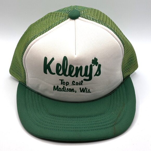Vtg 80s Keleny's Top Soil Madison, WI Snapback Trucker Rope Hat Green Mesh Back