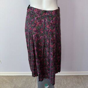 Vtg 80s Laura Ashley Purple Pink Floral Midi Dark Academia Skirt 10 Cotton Wool