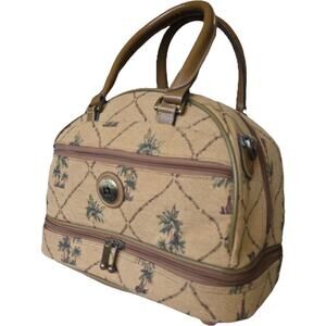 Vtg 80s Leisure International Tan Vanity Bag Case Tropical Palm Tapestry EUC