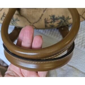 DEFECTS/FLAWS: some marks on handles, small tear in lining, loose threads.