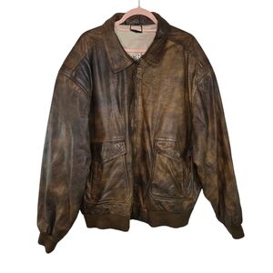 Vtg 80s Members Only brown distressed leather bomber jacket