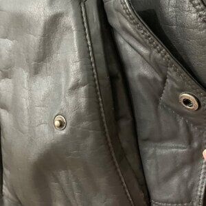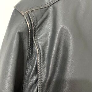 Vintage 1980s Members Only dark gray leather moto jacket in men's size 40. This stylish jacket features a lined interior, perfect for cool rides. Timeless design with a comfortable fit.