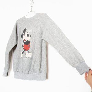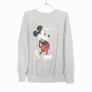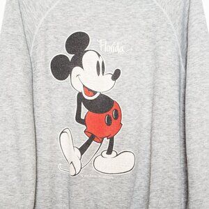 Vtg 80s Mickey Mouse Disney Graphic Florida Cotton Gray Raglan Sweatshirt - M