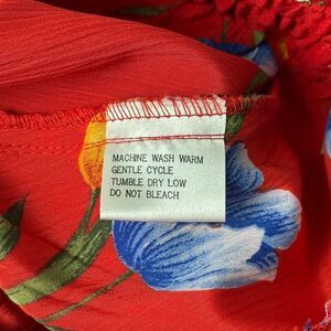 Vtg 80s Midi Skirt 12 Large Red Tulip Floral Button Up Twee Retro 50s 60s Pocket